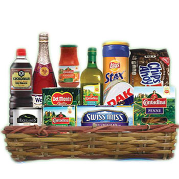 ELITE CHRISTMAS BASKETStandard Grade Soy Sauce 1L Extra Virgin Olive Oil 500ml Contadina Diced Tomatoes 14.5oz Contadina Pasta Sauce 420g Contadina Penne rigate 500g Del Monte Fruit Cocktail Imported 825g Highlands Gold Corn Beef 260g Welch Sparkling Juice 750ml Lays Stax Cheddar 5.5oz DAK chopped Ham 464g Chips Ahoy Chunky 333g Swissmiss 280g